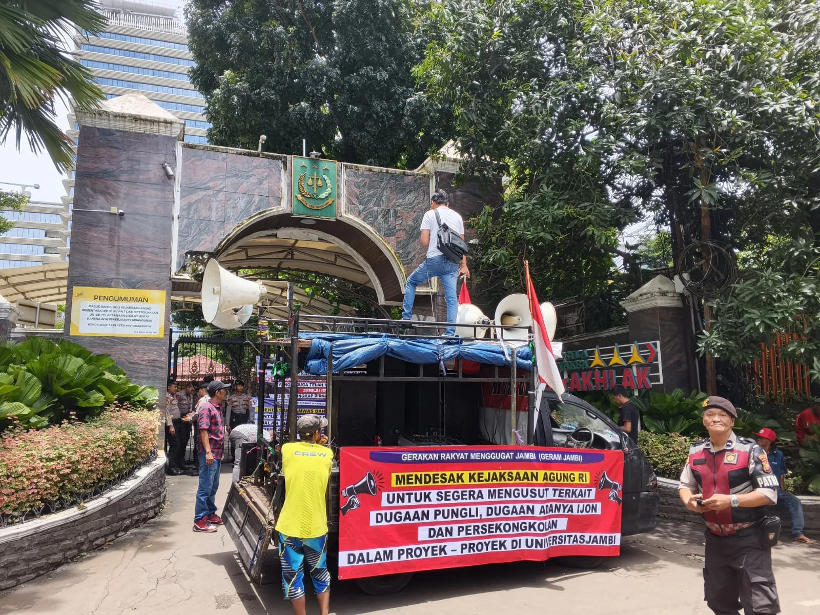 Jakarta – Dewan Pimpinan Pusat LSM Masyarakat Peduli Pemantau Anggaran Negara (DPP LSM MAPPAN) menggelar aksi unjuk rasa di depan kantor Kejaksaan Agung RI, Selasa (3/3/2026). Massa mendesak aparat penegak hukum mengusut dugaan penyimpangan dalam kegiatan swakelola pemeliharaan rutin jalan di Provinsi Jambi.