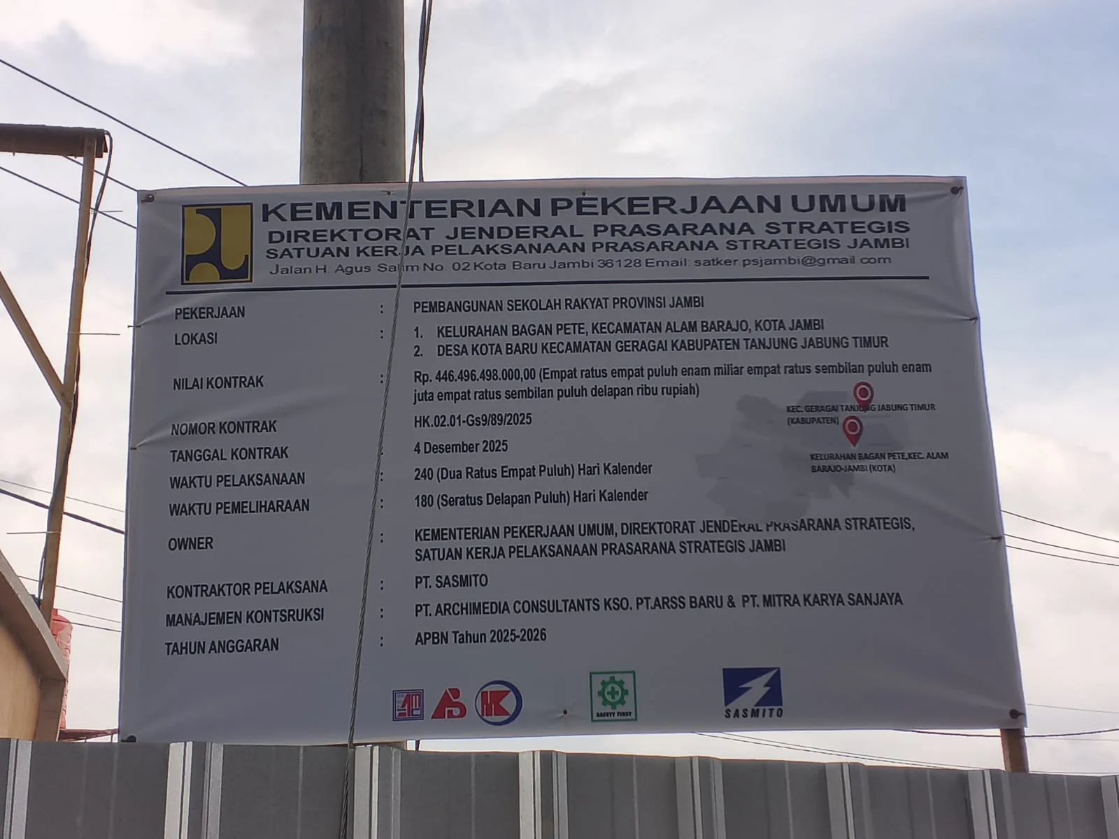 Dengan target penyelesaian pada akhir Juni 2026. Proyek SR di Kota Jambi dan Tanjung Jabung Timur yang digarap oleh kontraktor PT Sasmito baru mencapai progres 8 persen. Kontraktor masih bergulat pada pemasangan beberapa tiang pancang.