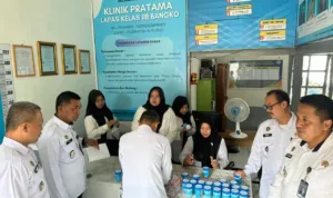 Begitu turun dari mobil, Bupati M. Syukur langsung disambut oleh pemain dan official PS Merangin. Yang mengenakan jaket dan kostum biru putih dengan dukungan sponsor dari Bank 9 Jambi.