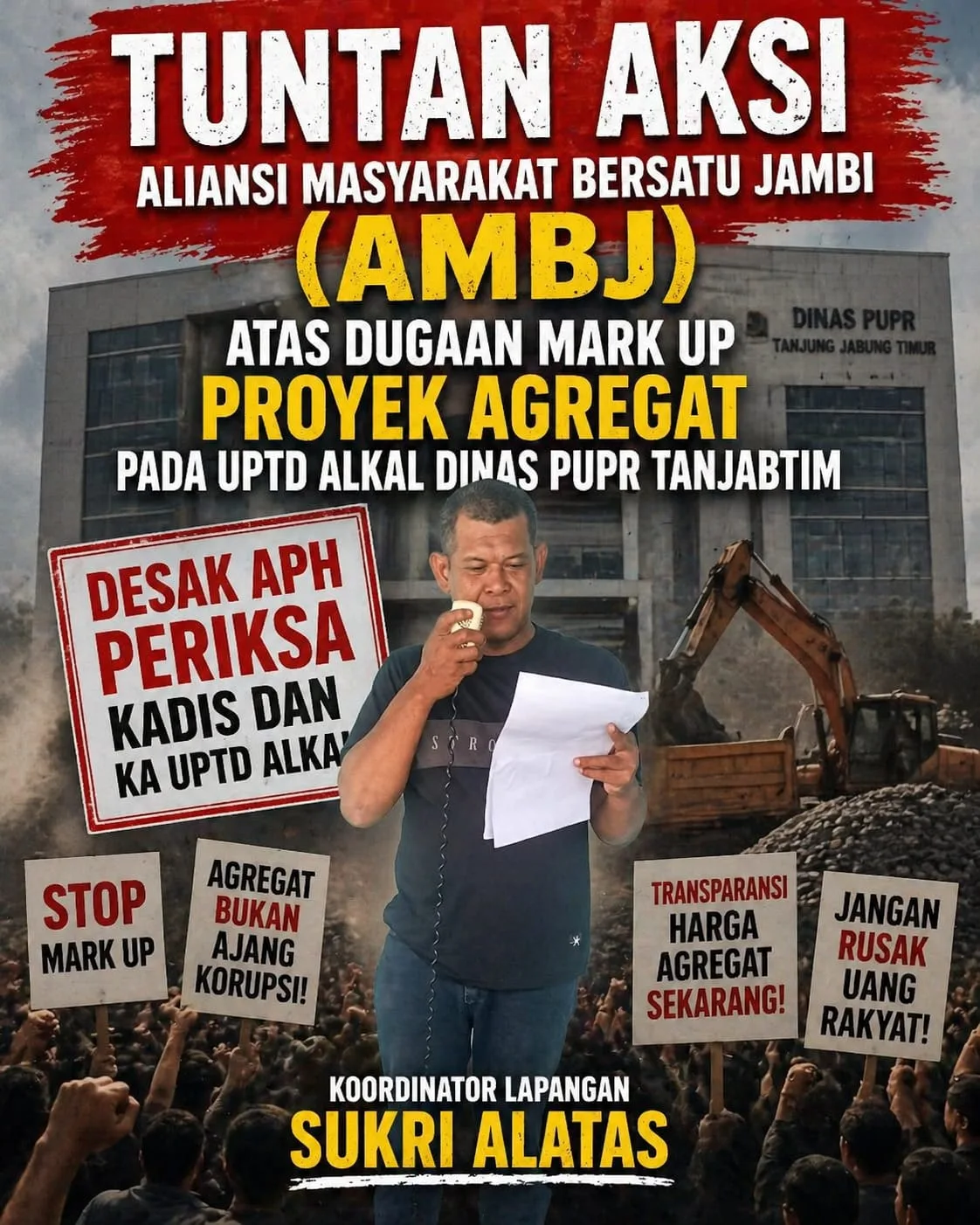 Geruduk Kejati Jambi, AMBJ Bongkar Dugaan Mark-Up Proyek Agregat Pada UPTD Alkal Dinas PUPR Tanjung Jabung Timur