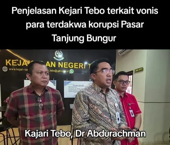 Suarin.com, Tebo – Setelah ramai jadi sorotan, Kepala Kejaksaan Negeri (Kajari) Tebo, Abdurachman menyikapi soal tuntutan rendah yang diiringi dengan vonis rendah dalam perkara 7 terdakwa korupsi Pasar Tanjung Bungur, Muara Tebo, Jumat, 19 Desember 2025.