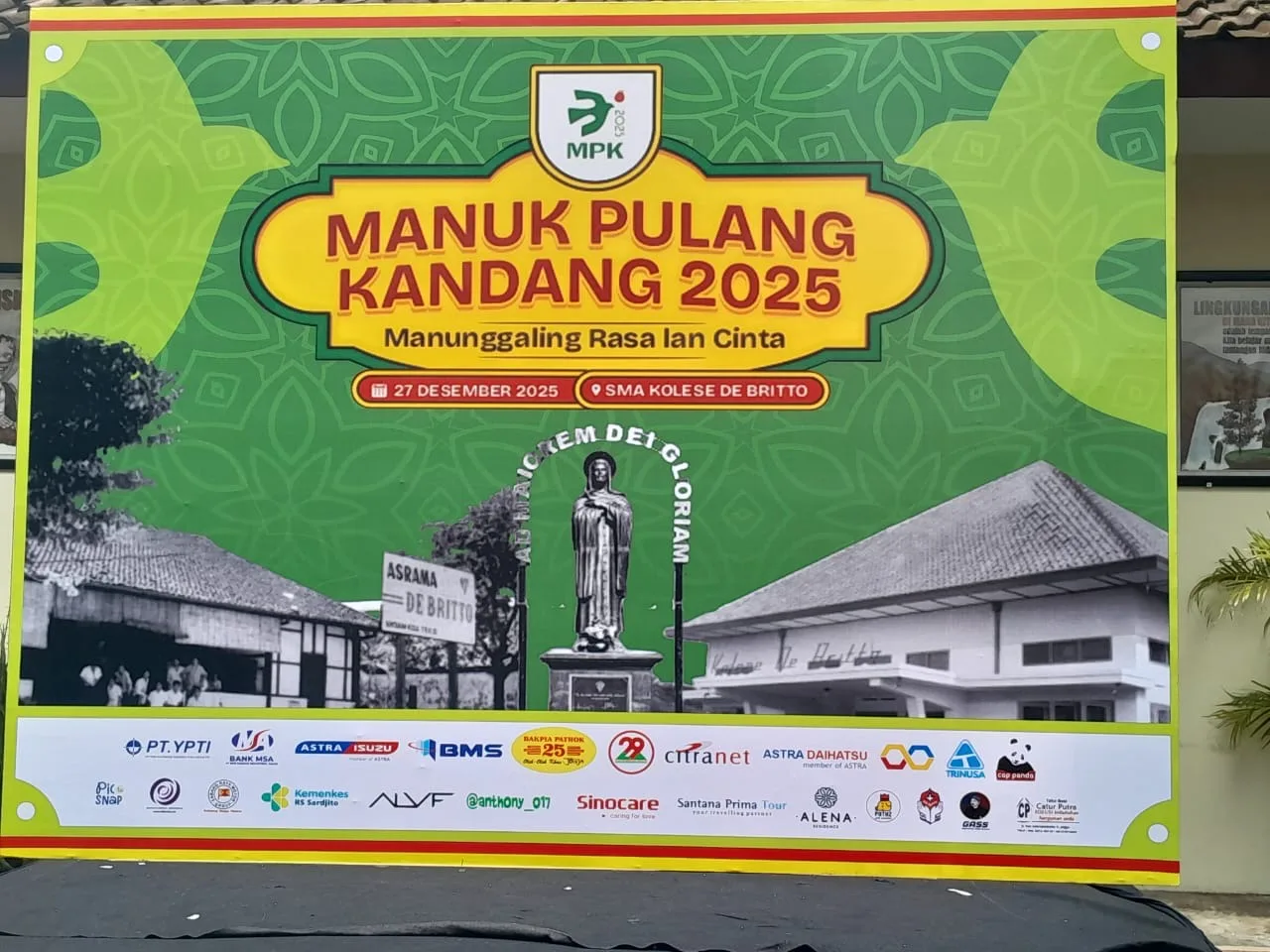 Sementara dalam sambutannya ketua panitia, Mahendra menyampaikan, Tema Manuk Pulang Kandang 2025 “Manunggaling Rasa lan Cinta” dimaknai sebagai momentum kembalinya seluruh keluarga besar Kolese De Britto untuk menyatukan rasa persaudaraan dan cinta yang telah ditempa selama masa pendidikan. Seperti burung yang kembali ke sarangnya, para alumni, siswa, guru, dan segenap komunitas De Britto diajak untuk pulang, bukan sekadar secara fisik, tetapi juga secara batin menguatkan ikatan, mengenang nilai-nilai ke De Brittoan, serta meneguhkan kepedulian dan solidaritas satu sama lain demi melangkah bersama ke masa depan.