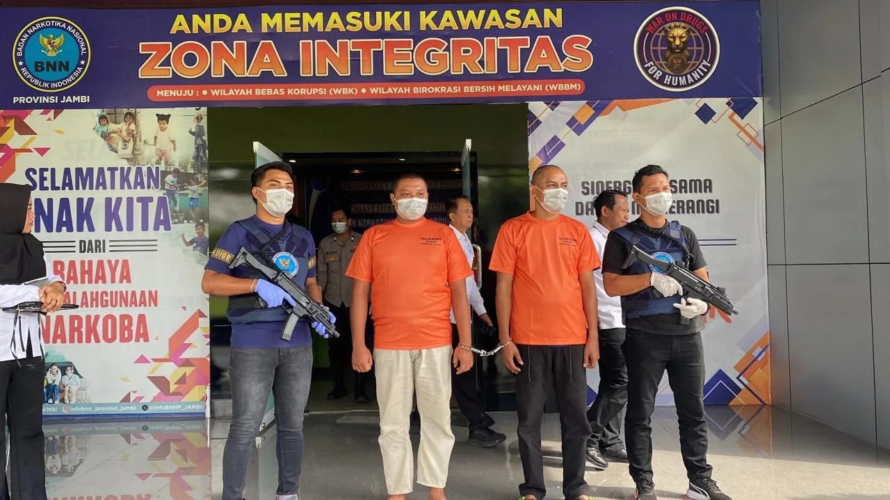 Dalam pengungkapan kasus tersebut, BNN Jambi mengamankan dua tersangka yakni Eko Listiono dan Zainal Arifin. Keduanya ditangkap di wilayah Mestong, Kabupaten Muaro Jambi.